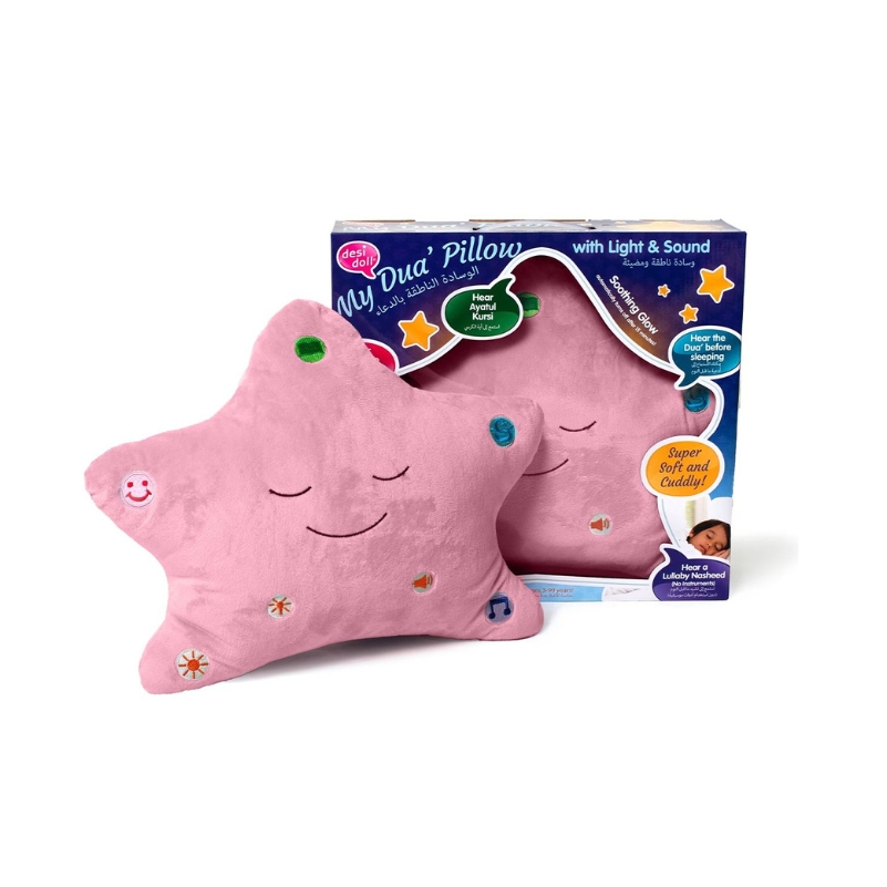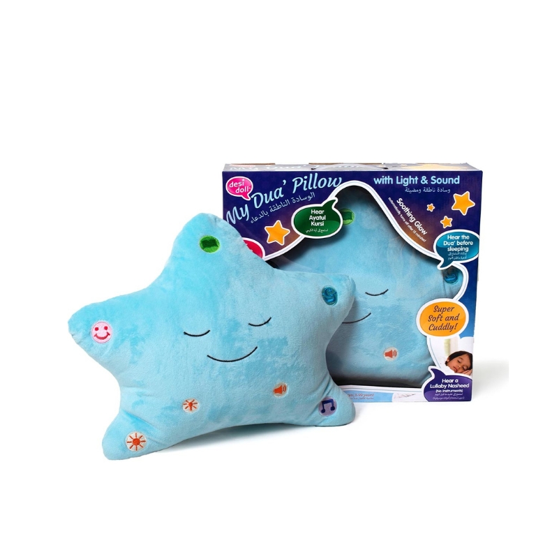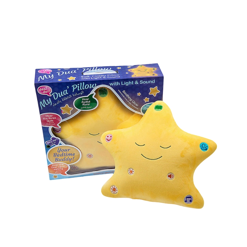 The original dua star pillow. One of the best-selling Islamic toys. My Dua Pillow is a beautiful islamic gift for your child. The pillow glows and is packed with night-time dua and supplications. Your child will love listening to these, and will surely benefit from listening to the prayers. and learning their nighttime dua’s/supplications with Tajweed. Also includes a soothing lullaby to make bedtime easier, and fun!