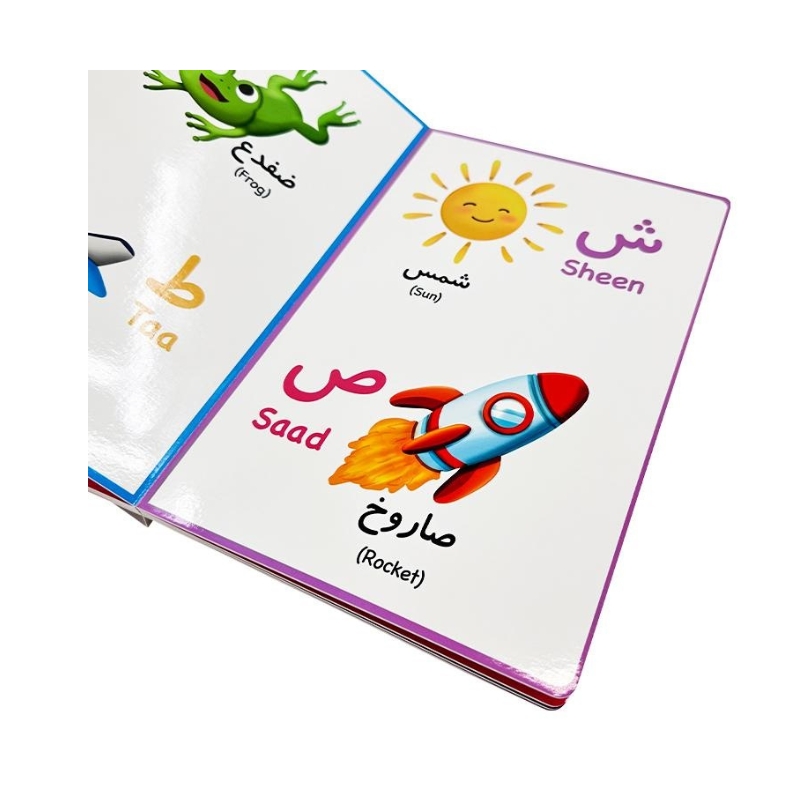 Discover the world of Arabic letters with this delightful sound book! Perfect for little ones eager to learn the Arabic alphabet, this book introduces each letter through vibrant illustrations and sounds. With a simple press of a button, children can listen and learn each letter and sing along to the Arabic alphabet song! Dive into this captivating sound book and let the Arabic Alphabet come alive with every page turn!