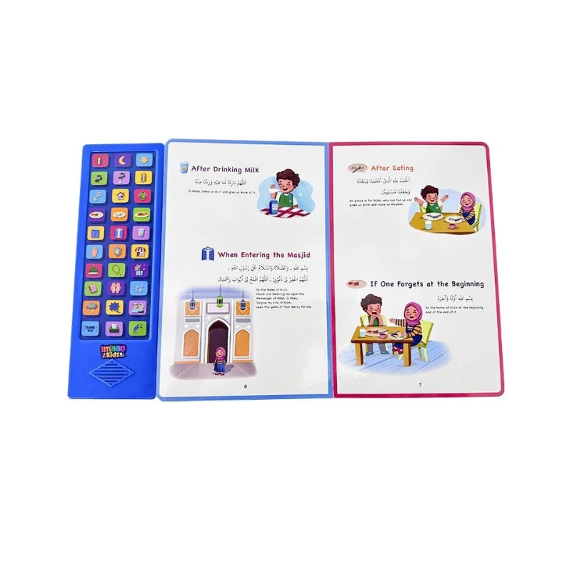 Let’s Learn Daily Duas is a delightful sound book designed to make learning 30 essential daily supplications fun and meaningful for children. With colorful illustrations and easy-to-use audio buttons, kids can listen to clear, melodious recitations that help build correct pronunciation and understanding. From morning to night, children will explore duas for gratitude, protection, and blessingsfostering spiritual awareness and mindfulness. This interactive book not only aids memorization but also nurtures a love for Islamic teachings. Whether at home or on the go, it’s the perfect companion for young learners on their journey of faith. Inspire your child’s heart with the beauty of dua, one page at a time!