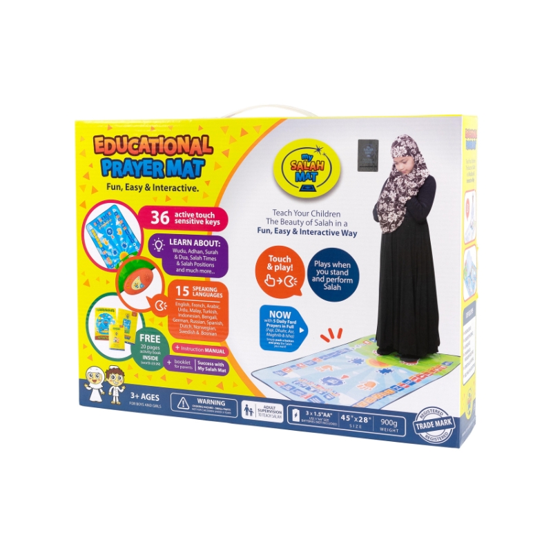 So we really hope, insha’Allah, that this prayer mat will really help parents with teaching their children how to perform salah in a Fun, Easy and Interactive Way.