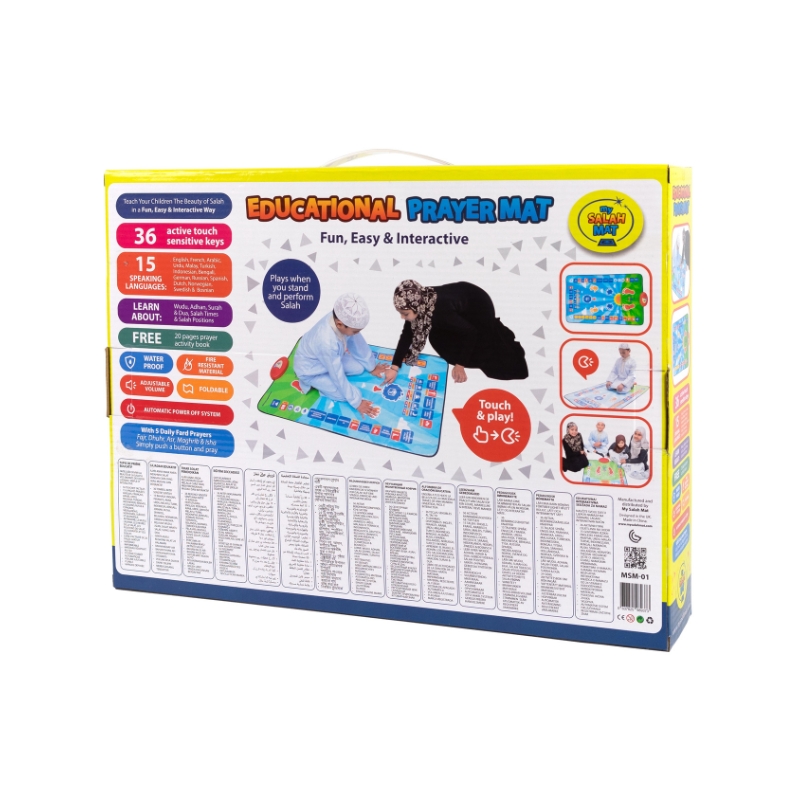We believe that it’s important to inspire children to learn salah- to pray- in a fun, easy and interactive way. We also believe that salah is about actively, physically and collectively as a family performing it on a prayer mat, and not just sitting down touching an iPad or Tablet. So, My Salah Mat created this full-size prayer mat that can be used to pray on, but also to learn from. It is in harmony with our children and designed according to the way that they enjoy learning.